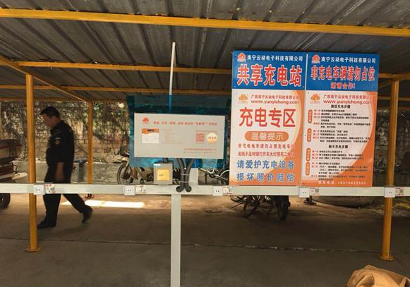 对于这样的情况,当地居委会就行动了起来,并找到了“有效解决”此类安全隐患的方法:在小区安装投币“智能”充电站!今年年初,两台“智能”充电设备就安装在了小区里面的车棚内。据悉,静安寺街道还将在辖区内其他小区安装电动自行车充电站,并称将“有效”解决辖区内的电动车安全隐患。