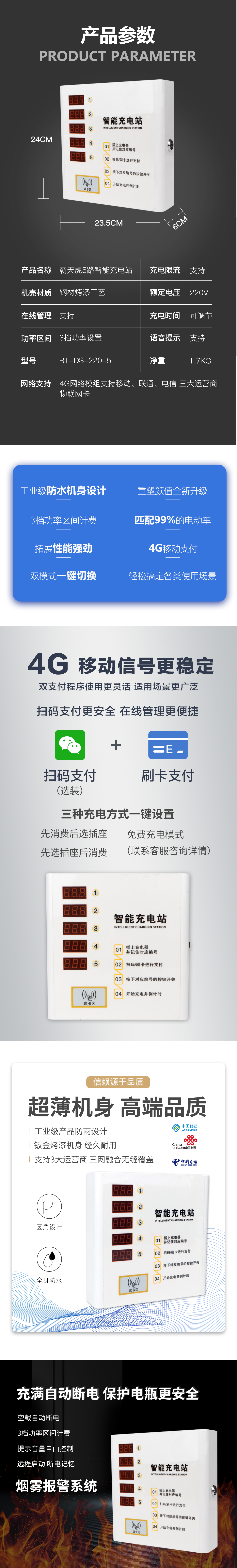 工业级产品防水设计,钣金烤漆机身 经久耐用。4G网络模组 支持移动、联通、电信 三大运营商物联卡