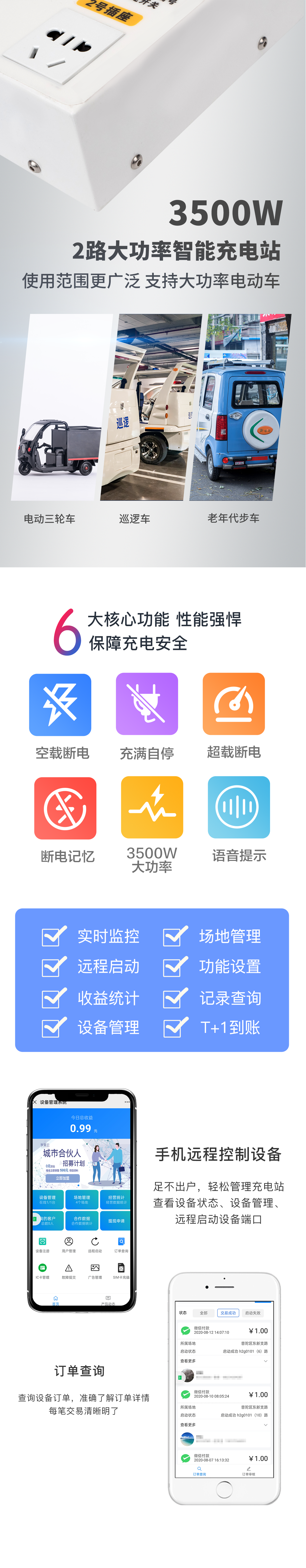 可支持2500W / 3500W 以内车辆使用 电动三轮、老年代步车、巡逻车可用
