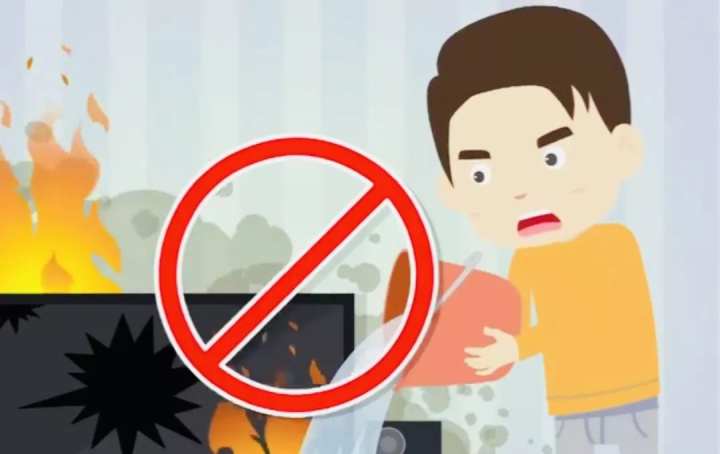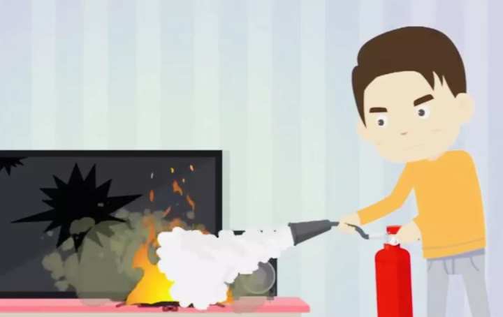 平时家中家用电器过多,存在一定的火灾隐患,如遇到家用电器起火时,一定要保持冷静,先切断电源,切不可用水灭火,而是使用灭火器进行灭火,防止漏电触电。