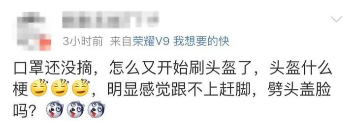 当然也有很多网友心存疑惑,口罩还没摘,又要戴头盔了?头盔是个什么梗?